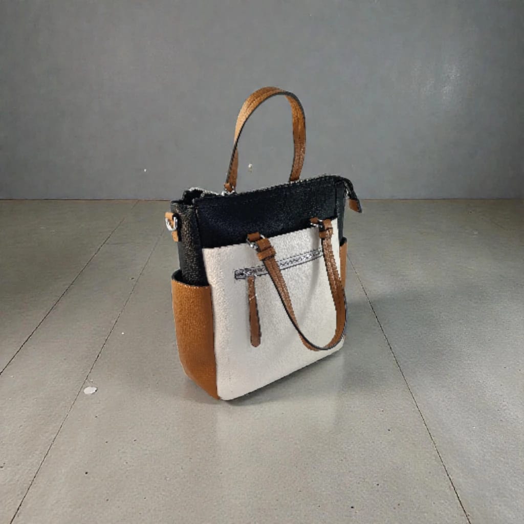 La mochila tricolor mujer combina estilo, comodidad y funcionalidad en un diseño moderno que se adapta a la vida activa de mujeres profesionales, urbanas y dinámicas. Con su armoniosa mezcla de blanco, negro y camel, es una pieza versátil que se integra fácilmente en looks casuales, urbanos y laborales. Diseñada para acompañarte en tu rutina diaria, esta mochila ofrece la capacidad ideal para llevar tus esenciales sin renunciar a la elegancia. Su diseño la convierte en una opción perfecta para mujeres de Galicia y especialmente de Vigo, donde el ritmo urbano requiere accesorios prácticos, resistentes y con estilo.